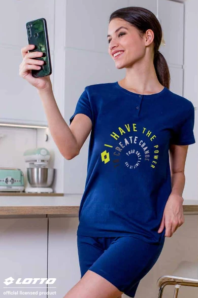 Completo Donna corto cotone 100% Lotto 5145 Outlet con maglia mezza manica aperta a serafino con bottoni stampata e pantalone corto
