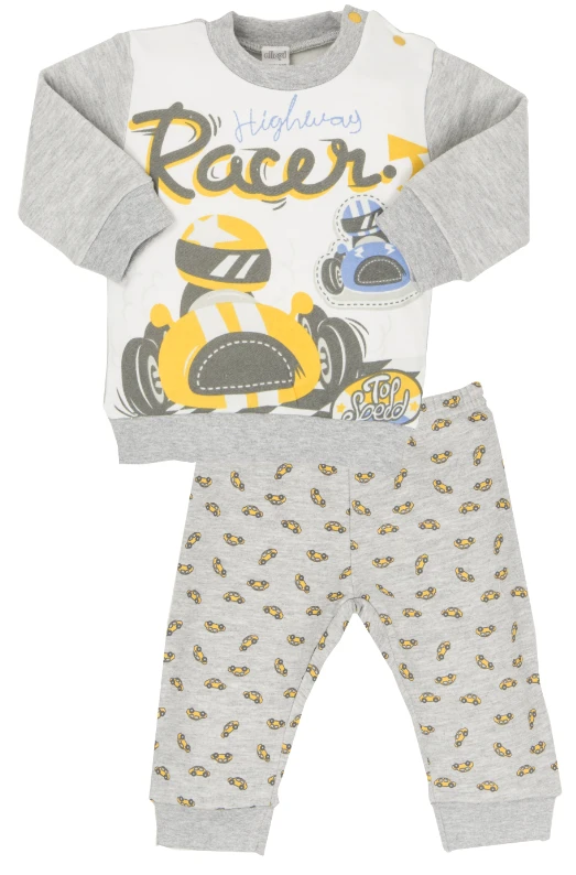 Bellissimo pigiama neonato cotone felpato invernale con maglia girocollo stampata con bottoni laterali a pressione bordato ai polsi ed in vita e pantalone fantasia con bordo alle caviglie. Massimo confort