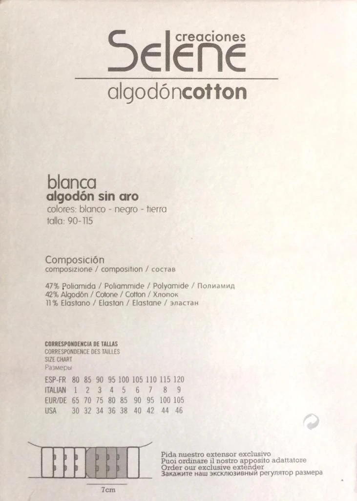 Reggiseno senza ferretto in cotone coppa C/D Selene art.Blanca SENZA FERRETTO IN CONTONE CON DOPPIA COPPA PREFORMATA. SERIE NATURCOTTON.