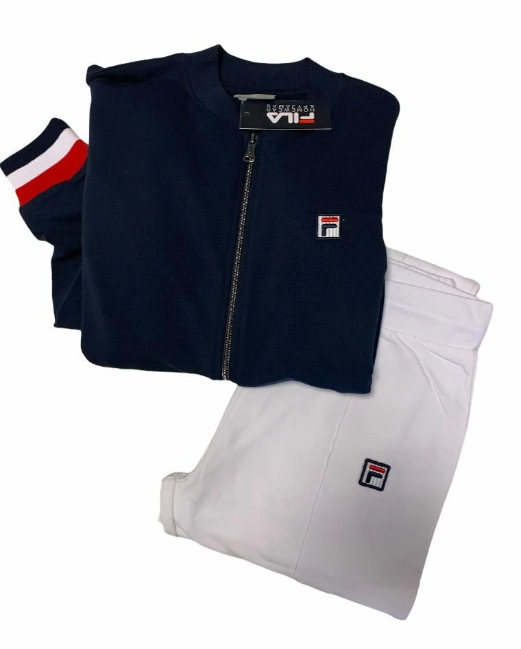 Offerta outlet Campionario Tuta Donna Fila 4060 cotone felpato invernale con giacca tutta aperta con lampo con logo piccolo laterale e pantalone con laccio in vita e logo piccolo laterale tessuto elasticizzato massimo confort ed ottima vestibilita’